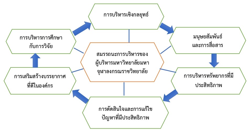 The results showed that: 1. The level of administrative performance of the administrators of Maha Chulalongkorn University, overall, was at very high overall ( = 4.38 S.D.= 0.49). The level of administrative competence of Maha Chulalongkornrajavidhayalaya University administrators was generally very high (